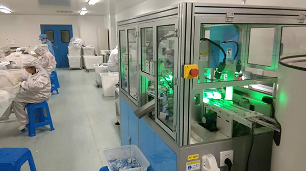 3、自動組裝:待組裝區(qū)域內(nèi)的(上、下)卡蓋以及芯條由相應(yīng)的機械手分別自動抓取至特定的位置并扣緊進而組裝為成品;